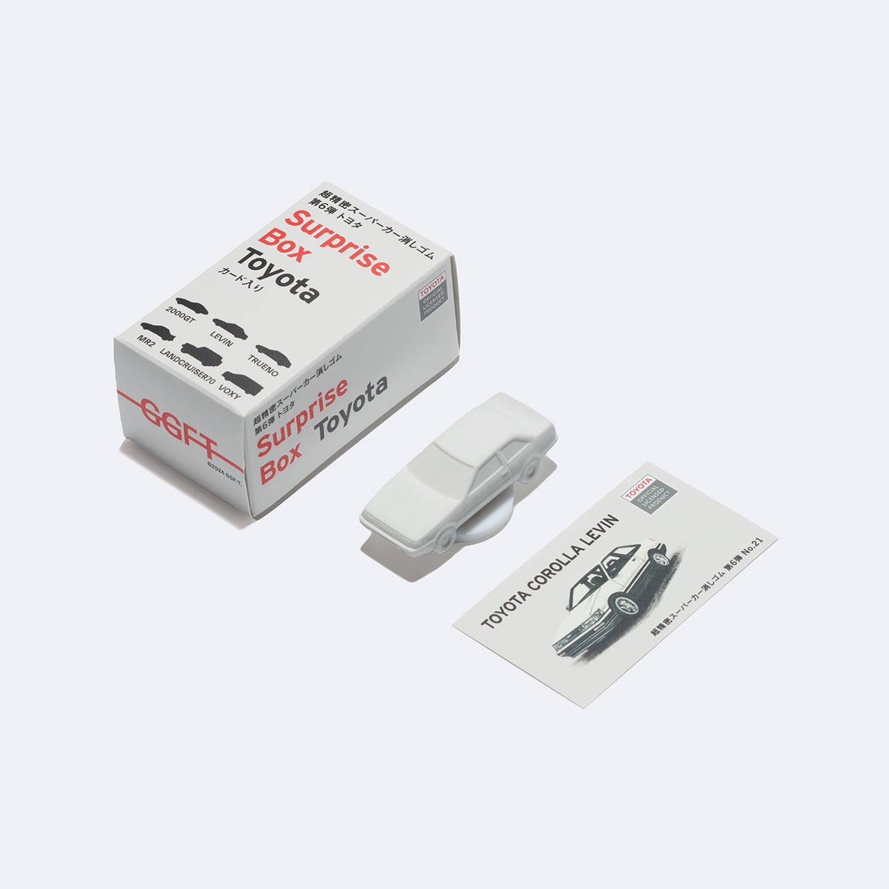 内容物: スーパーカー消しゴム(カラー:シークレット)×1個 ディスプレイ台×1個 ライセンスカード×1枚 ※超精密スーパーカー消しゴム第6弾(No20〜25)が、ランダムで1個入っています。